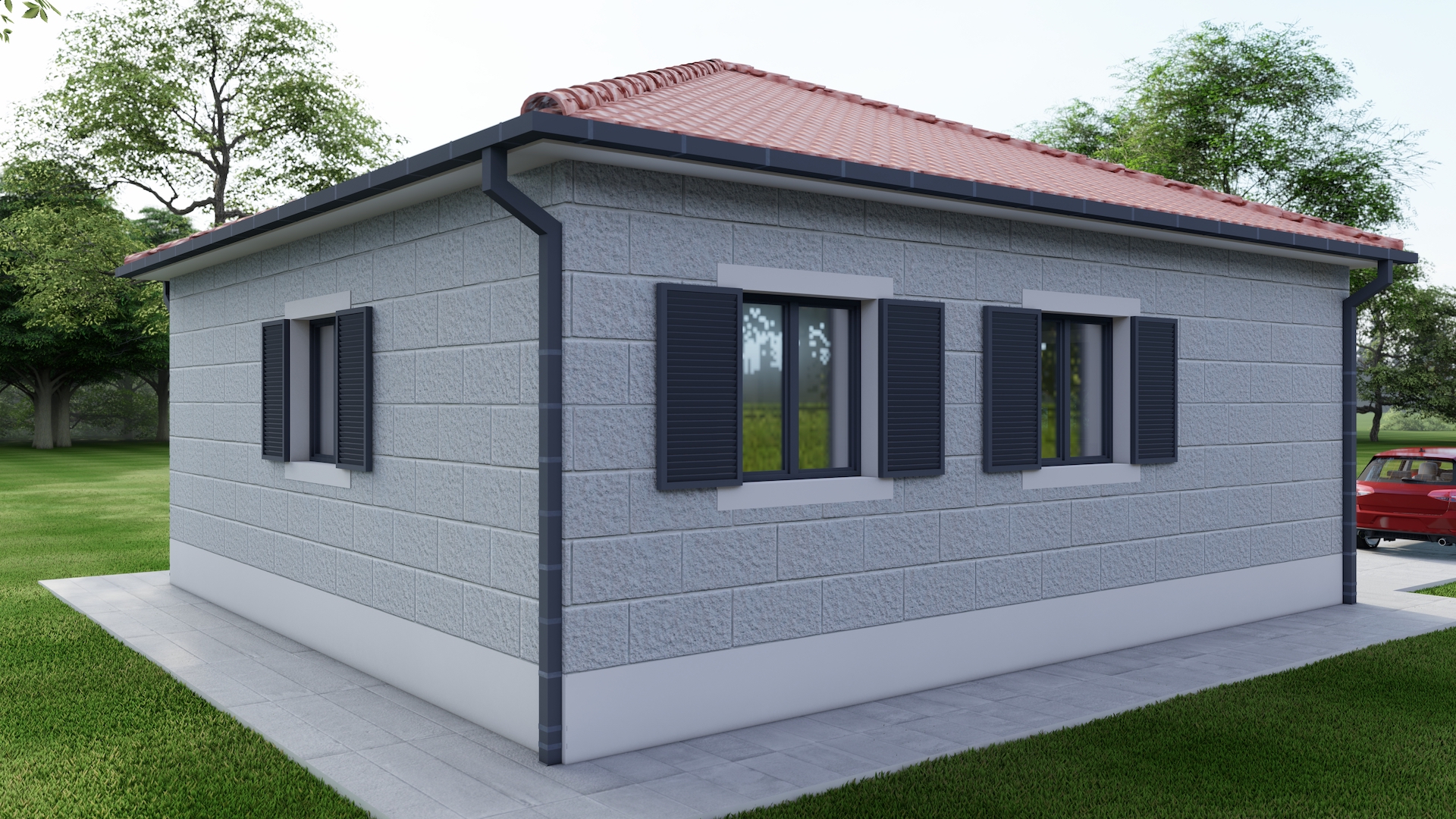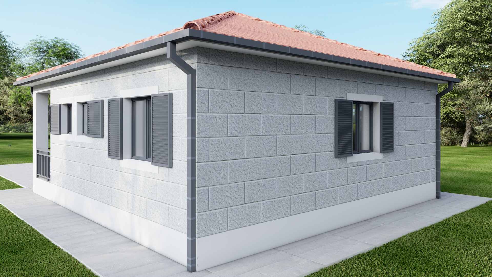 The complete project includes an established foundation, ground floor, roof, cross-section, 4 facades and a three-dimensional representation of the house.