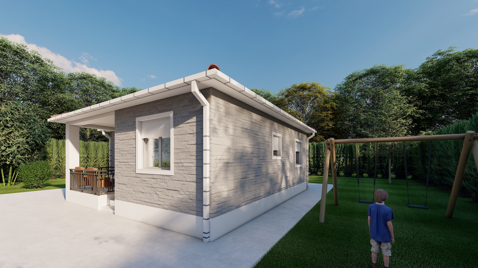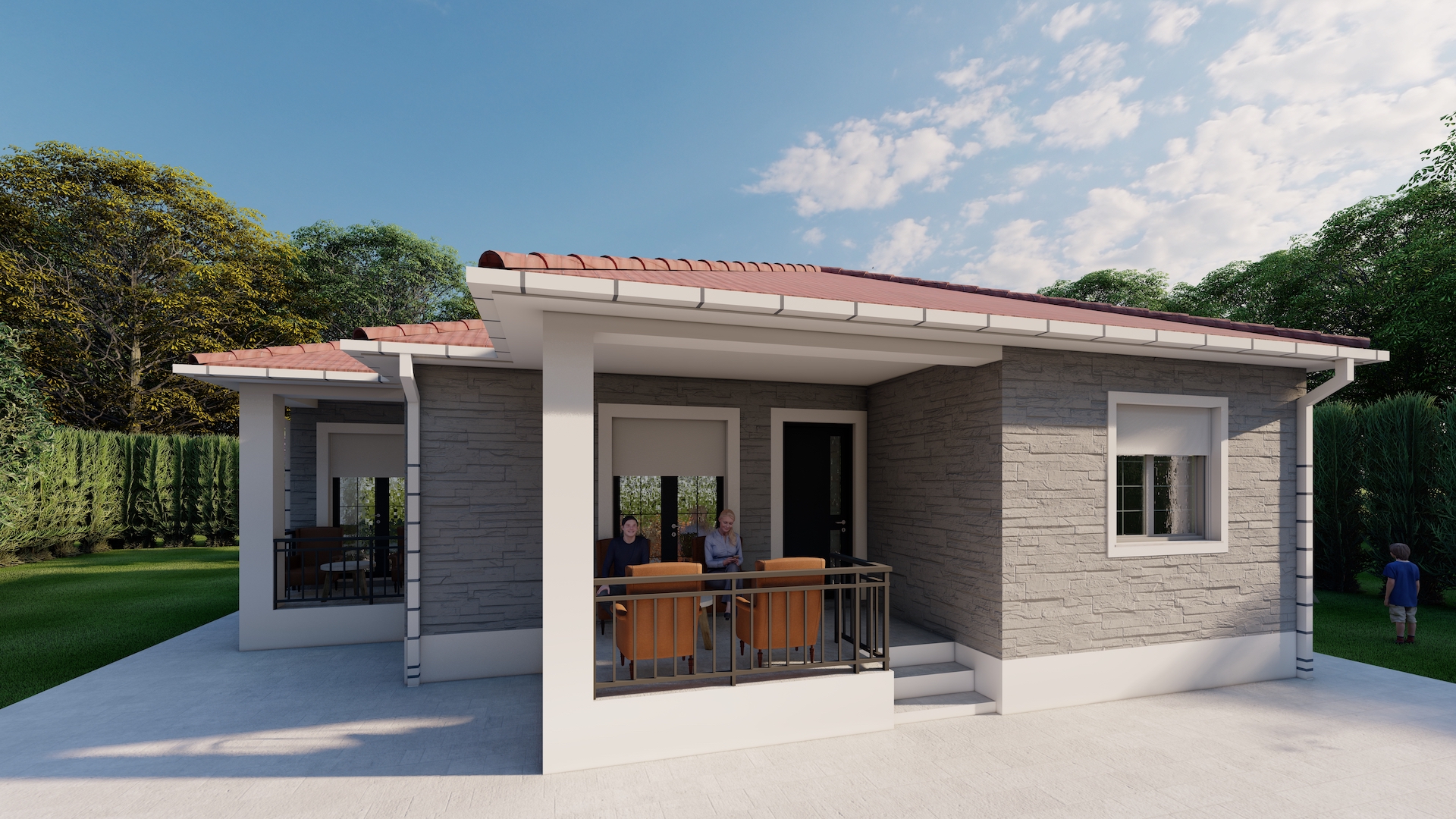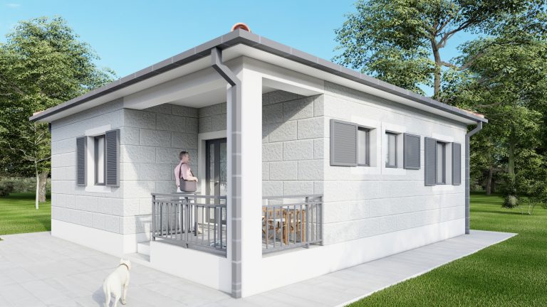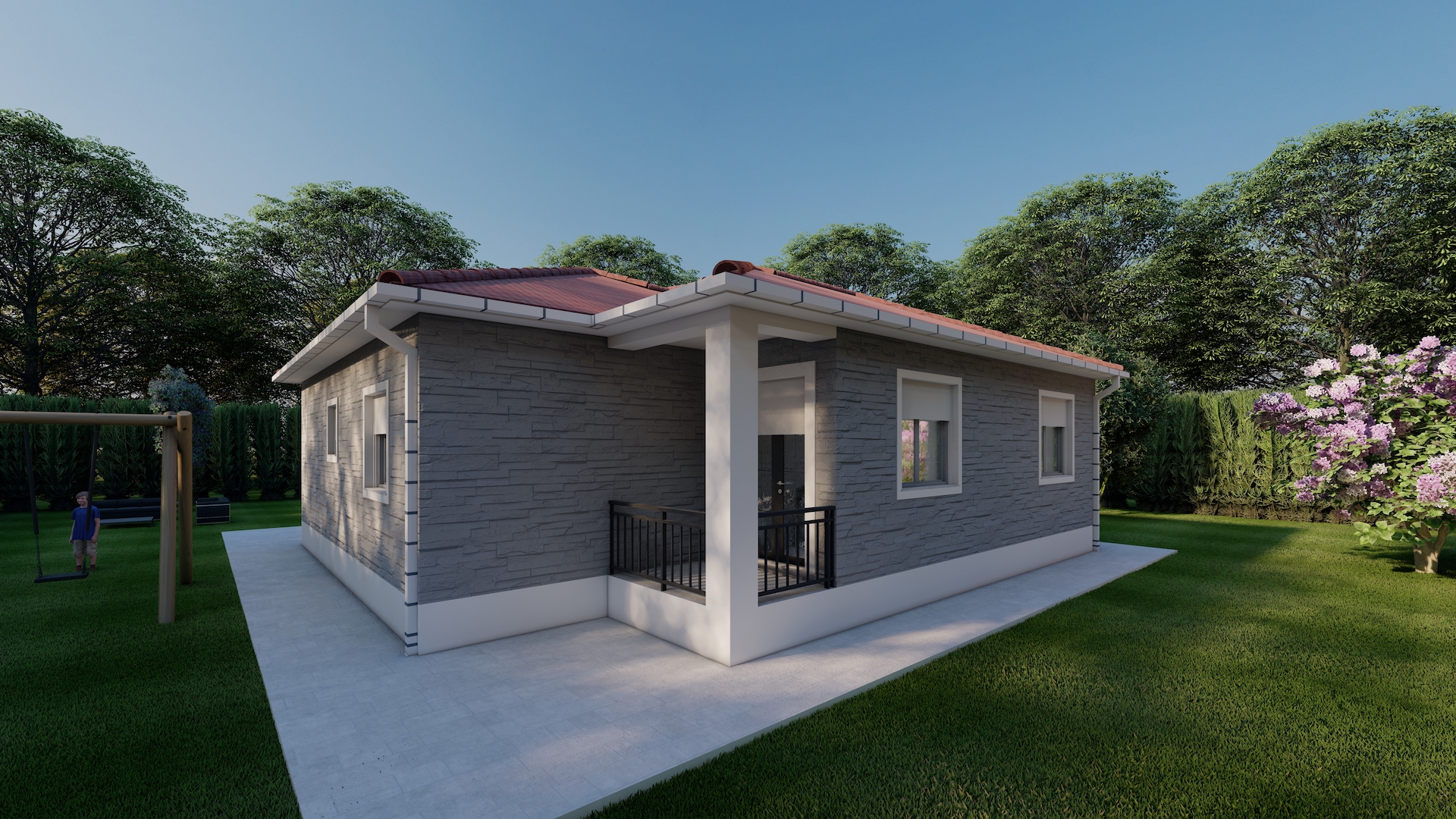 The complete project includes an established foundation, ground floor, roof, cross-section, 4 facades and a three-dimensional representation of the house.