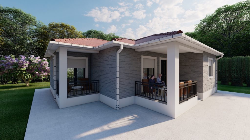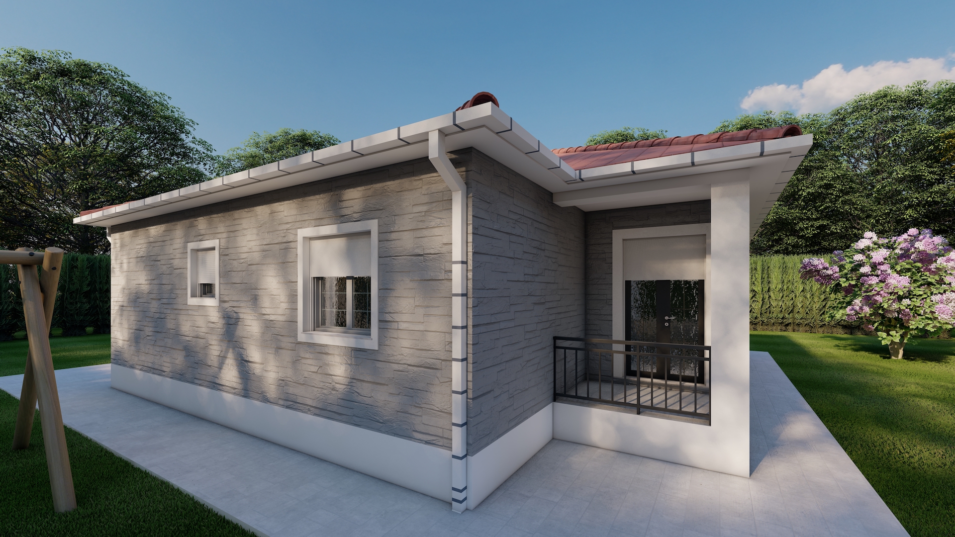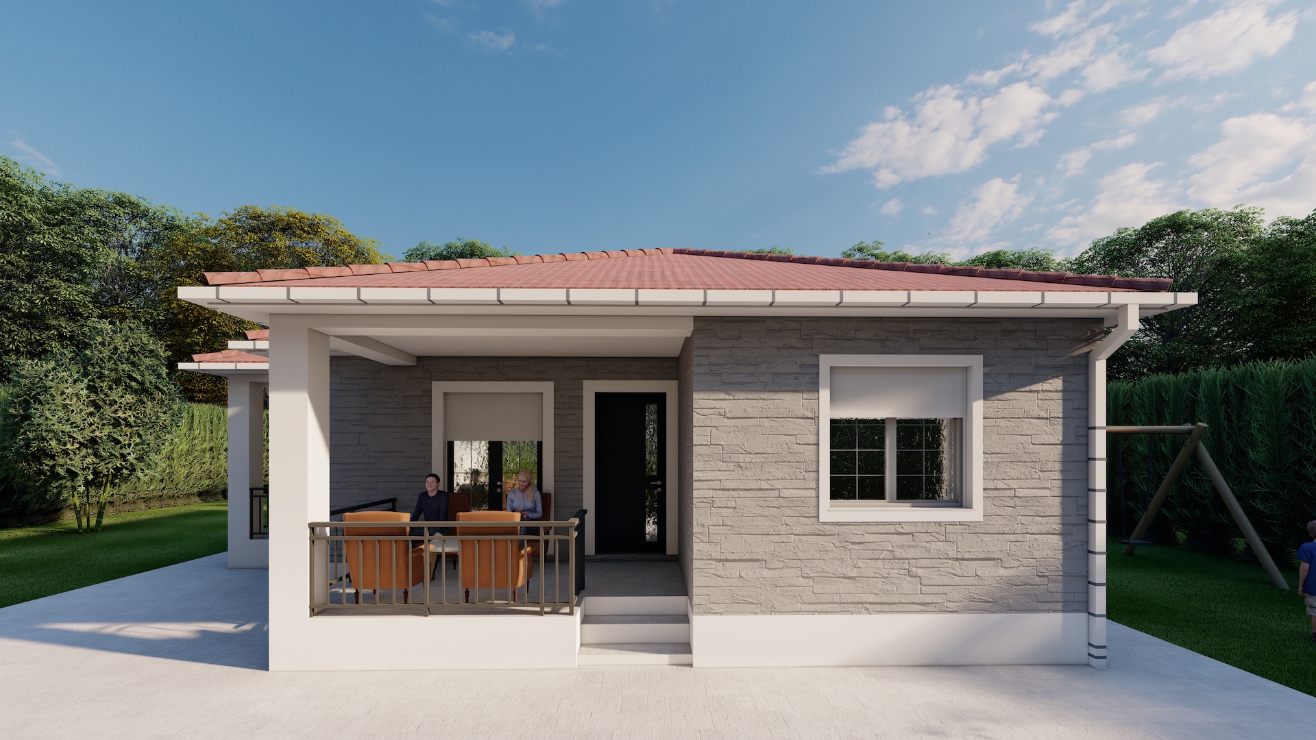 The complete project includes an established foundation, ground floor, roof, cross-section, 4 facades and a three-dimensional representation of the house.