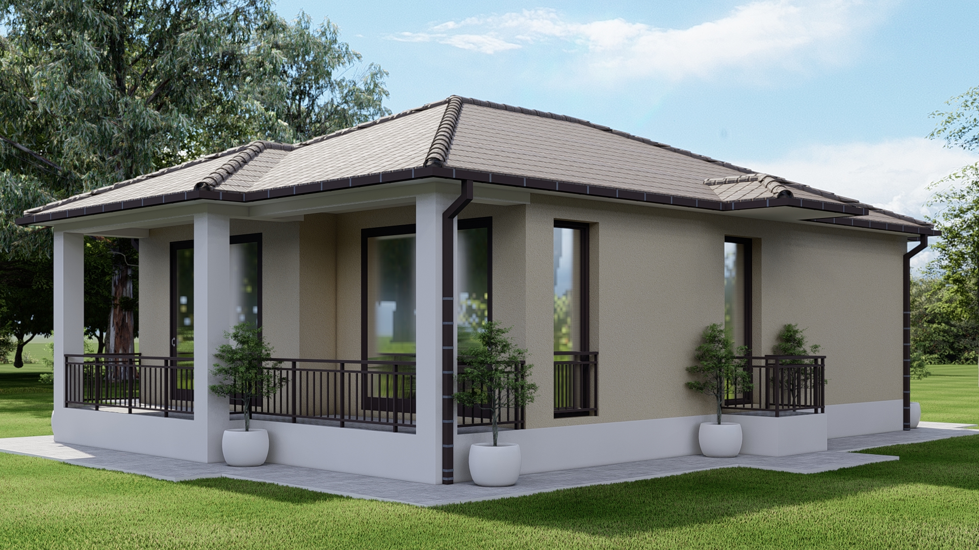 Detailed Project: The complete project includes a detailed foundation plan, ground floor plan, roof plan, section, 4 facades, and a three-dimensional view of the house.