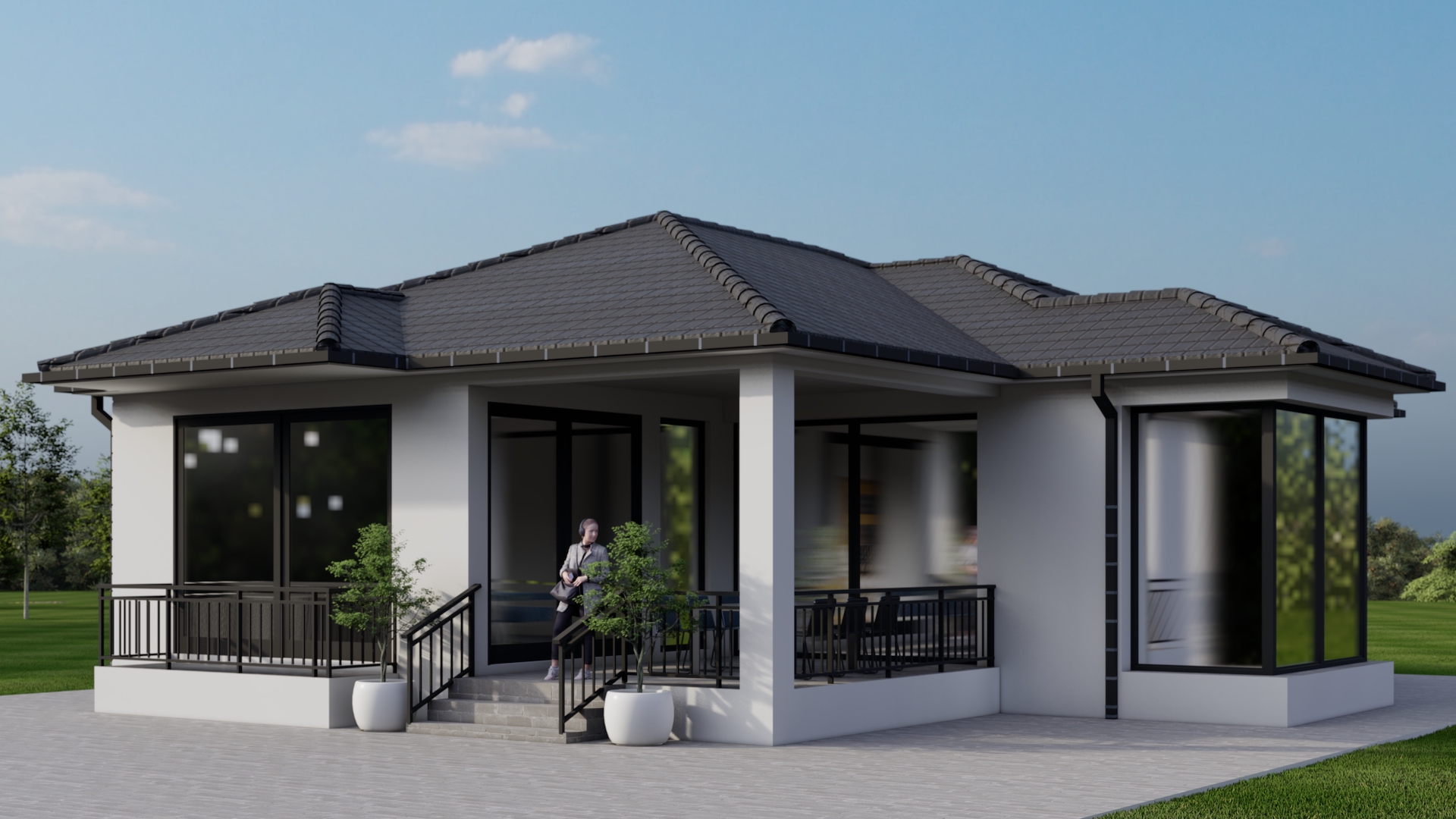 The modern living room together with the kitchen and dining room covers an area of 41.76m2, offering a comfortable space for family gatherings and relaxation.