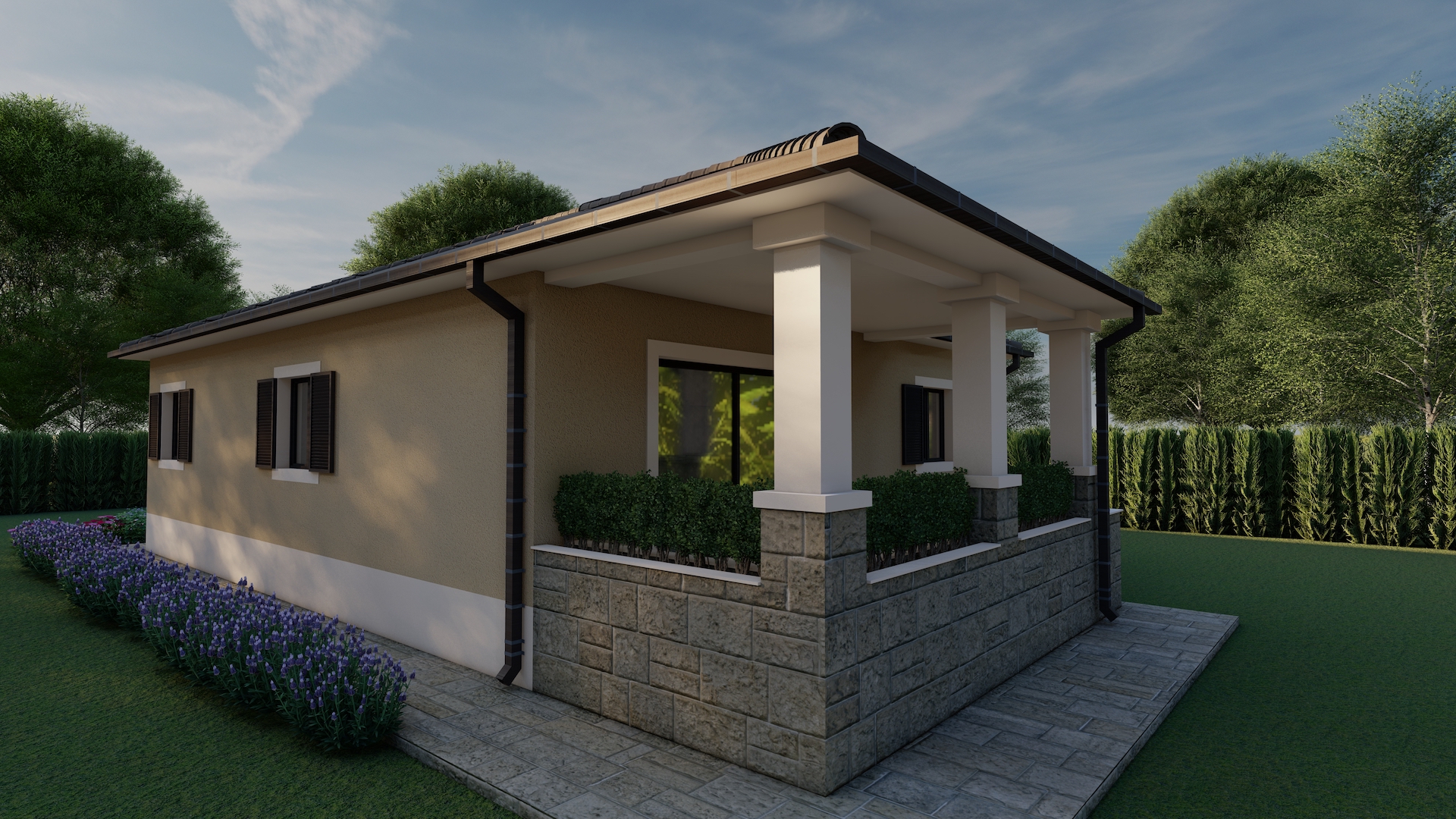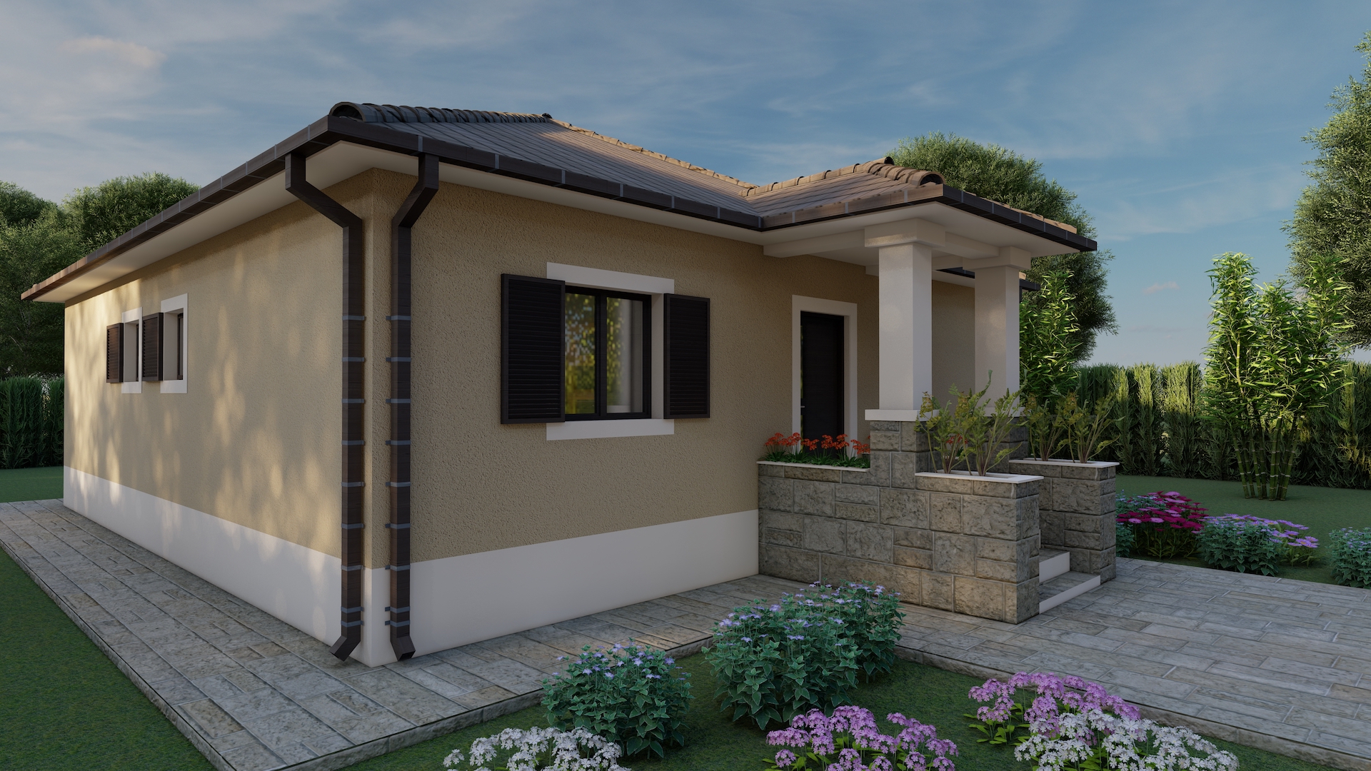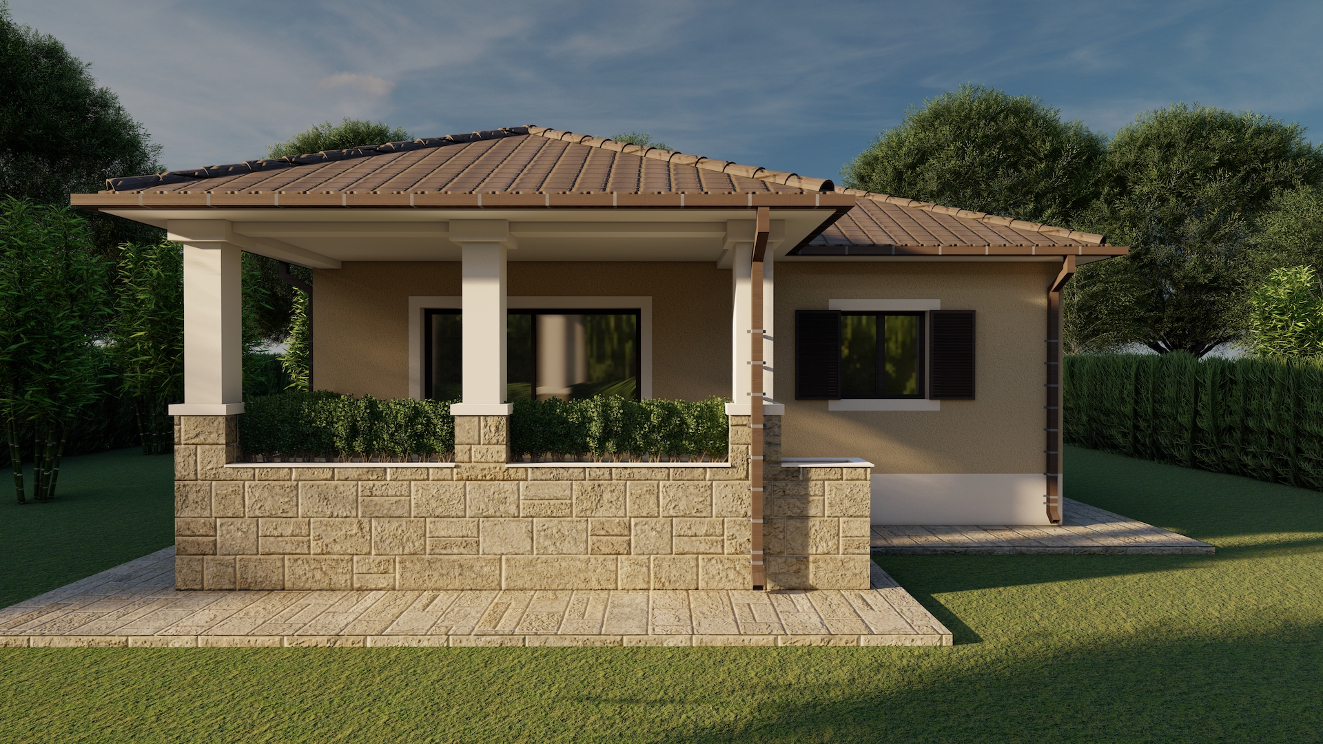 The complete project includes an established foundation, ground floor, roof, cross-section, 4 facades and a three-dimensional representation of the house.