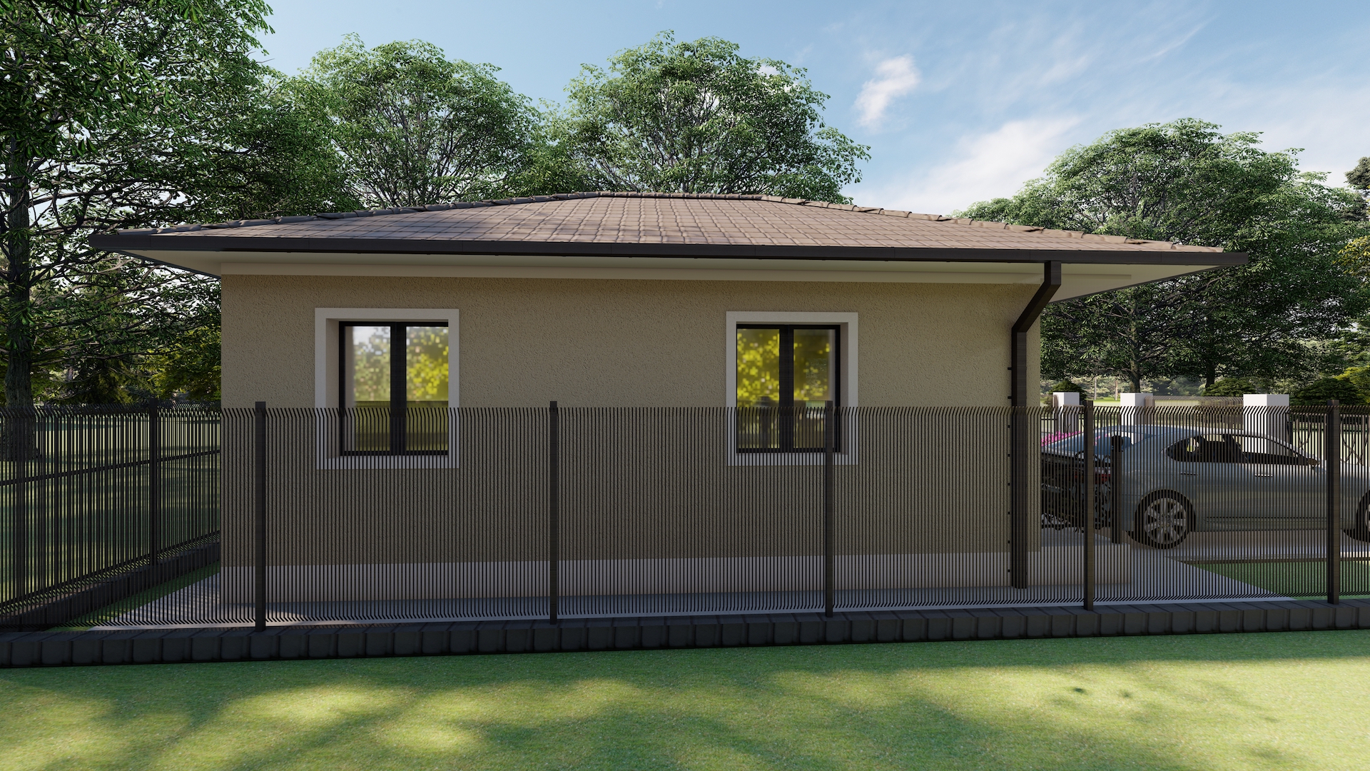 Kompletan projekat uključuje iskotiranu osnovu temelja, prizemlja, krova, presjek, 4 fasade i trodimenzionalni prikaz kuće.