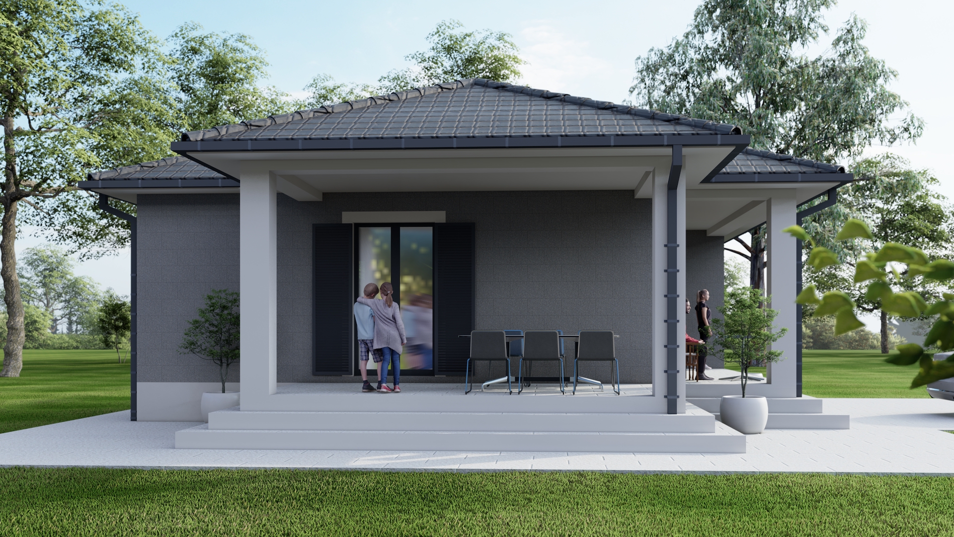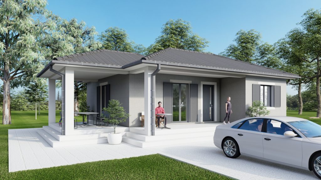 Dobrodošli u Prizemna kuća 2S-98 – prostor gdje se udobnost, funkcionalnost i estetika stapaju u savršeno usklađenom domu. Ova prizemna kuća prostire se na 98,27 kvadratnih metara bruto površine, pružajući savršeno rješenje za veliku porodicu koja cijeni praktičnost i eleganciju.