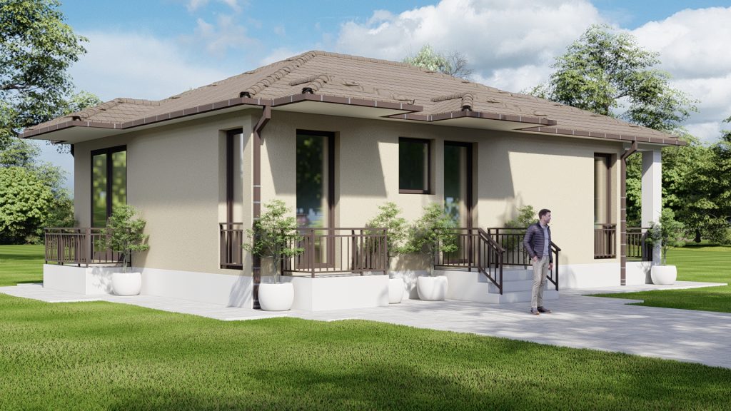 Detaljan Projekat: Kompletan projekat uključuje detaljan plan temelja, plan prizemlja, plan krova, presjek, 4 fasade i trodimenzionalni prikaz kuće.