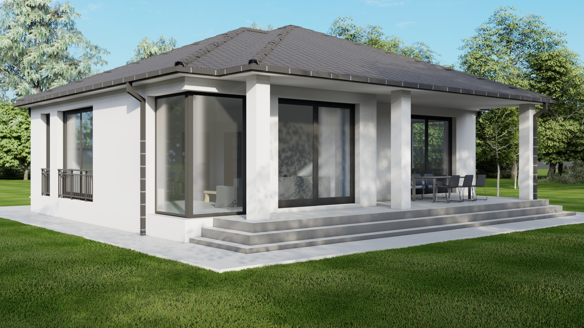 Kompletan projekat uključuje iskotiranu osnovu temelja, prizemlja, krova, presjek, 4 fasade i trodimenzionalni prikaz kuće.