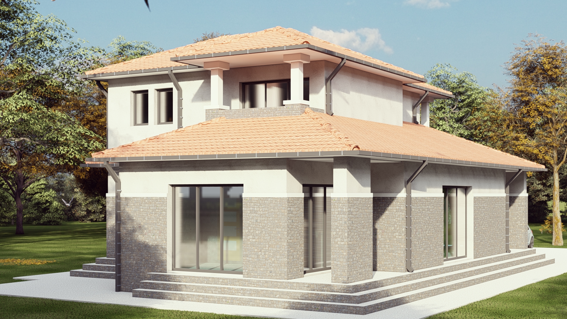 Detaljni Idejni Projekat: Kompletan projekat uključuje detaljno iskotiranu osnovu temelja, prizemlja, sprata, krova, 2 presjeka, 4 fasade i trodimenzionalni prikaz kuće.